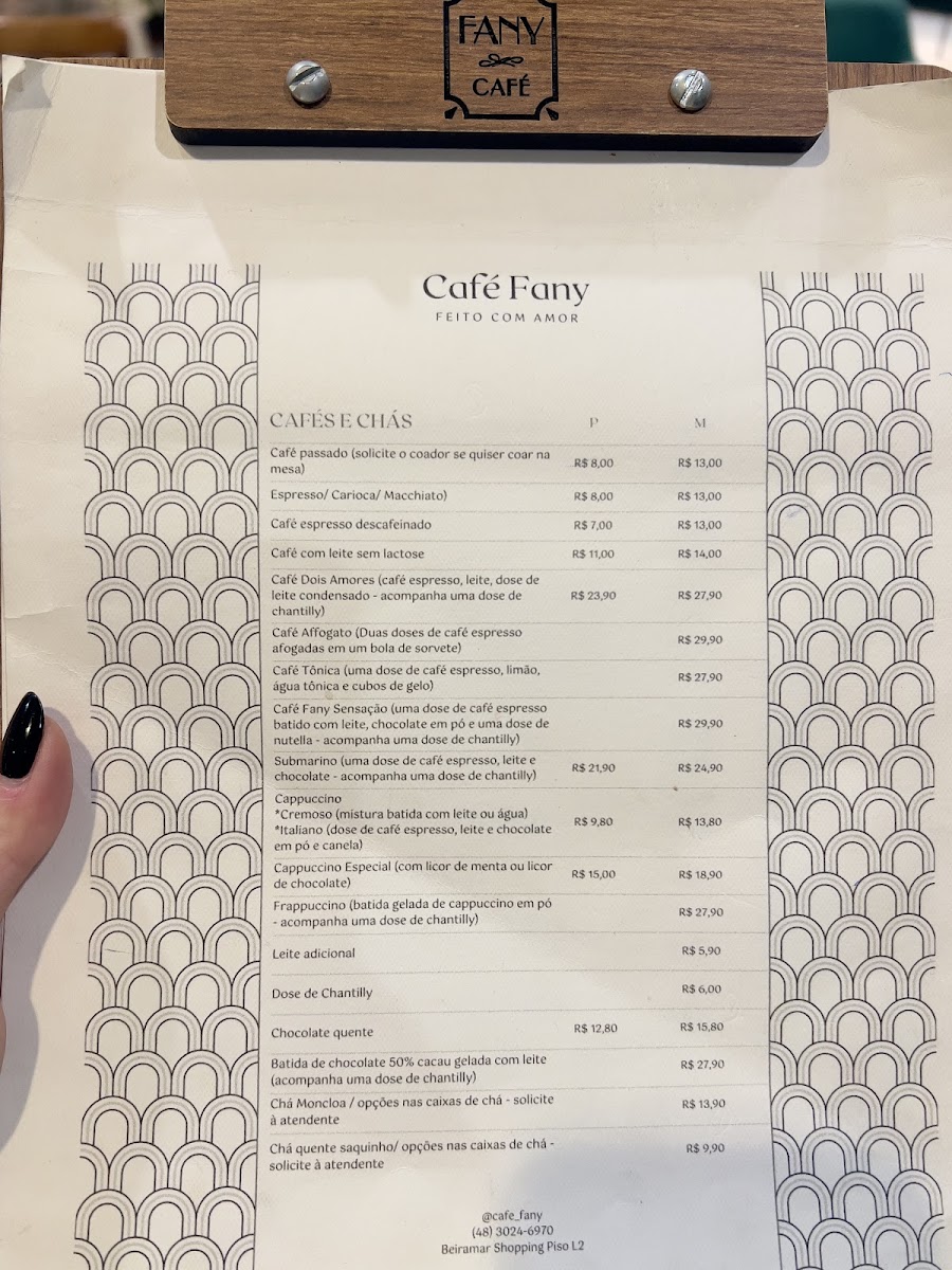 Nestled in Florianópolis with stunning sea views, Fany Coffee Bar offers a thoughtfully curated menu that blends classic and innovative coffee creations with delightful treats. The café excels in fresh, rich espresso-based drinks like cappuccinos that invite warm, comforting moments. Sweet offerings such as the Apfel Strudel and a unique Sweet Potato Brownie stand out for their distinct flavors, appealing to those seeking both traditional and novel desserts.